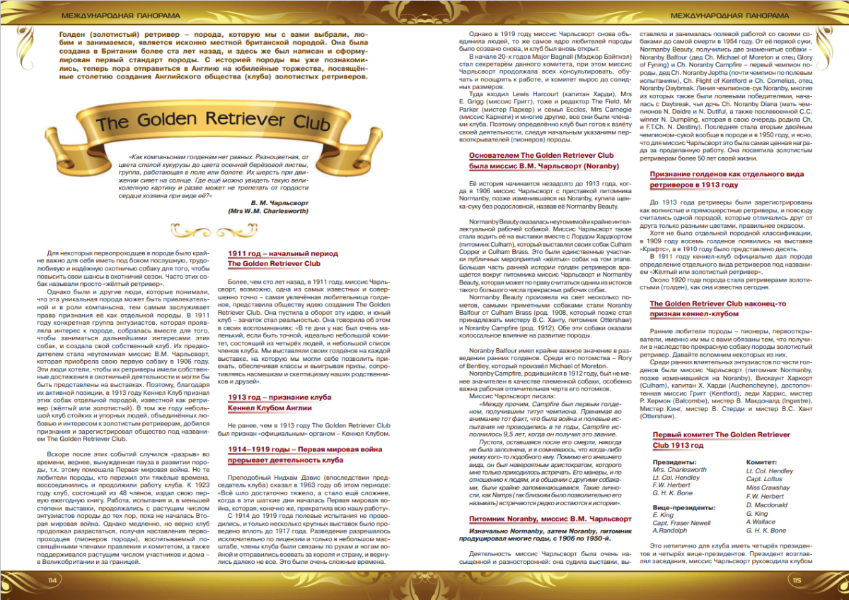 Статья из журнала "Международная панорама" к 100-летию The Golden Retriever Club (2013г.)