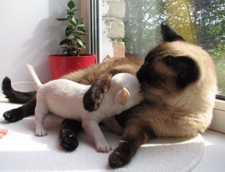 Два малыша.Самый идеальный вариант развития событий — когда и кошка и собака появляются в семье одновременно и совсем малышами. Только что отлученные от мамы они найдут друг в друге ценную поддержку и родственную душу. Малыши ещё не привыкли спать в одиночку, это для них настоящий стресс. Они будут прижиматься друг к другу во сне, вдвоём им будет легче и спокойнее.