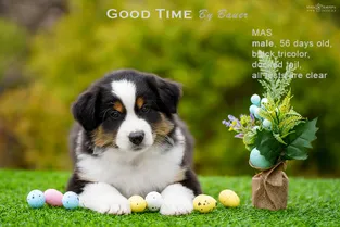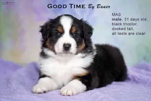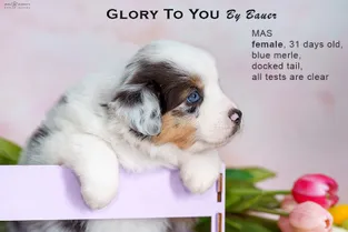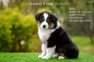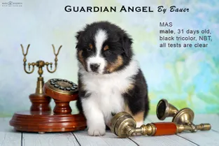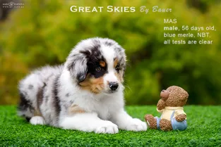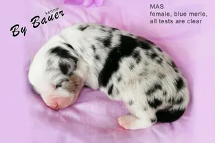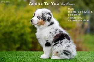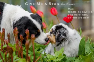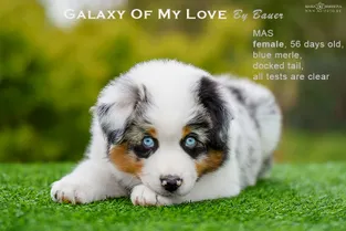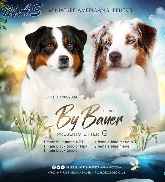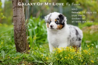 от пары Чемпионов породы миниатюрная американская овчарка MOONBABY’S FIRE SKY / Фаер / и ALSHAIN BY BAUER / Аля /.